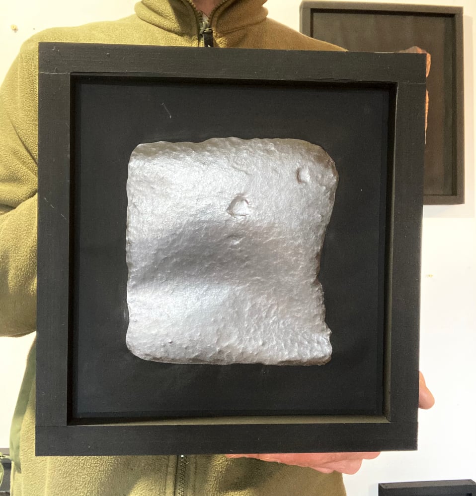 The piece is finished with black earth pigment and framed, unglazed, in pine and MDF - finished also in black earth pigment.