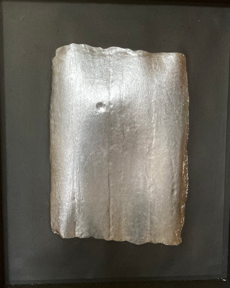 The piece is finished with black earth pigment and framed, unglazed, in pine and MDF - finished also in black earth pigment.