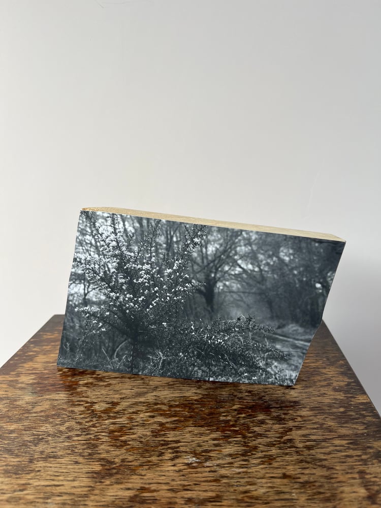 Large format photograph, hand printed on fibre based paper. Mounted on a fragment of Somerset willow wood.