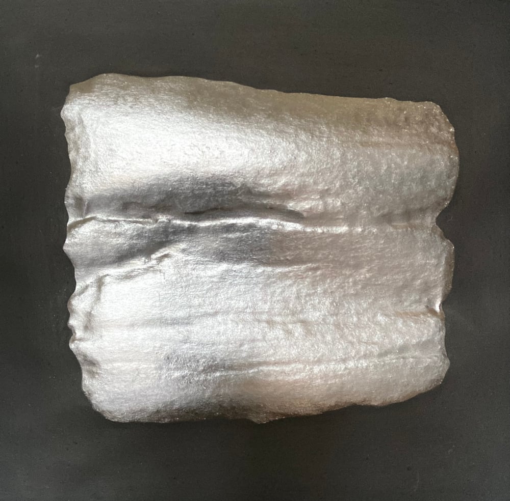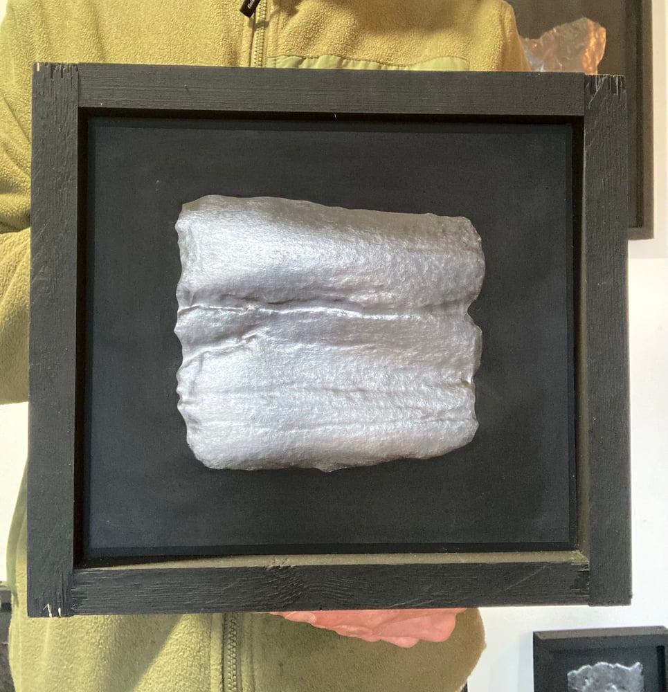 The piece is finished with black earth pigment and framed, unglazed, in pine and MDF - finished also in black earth pigment.